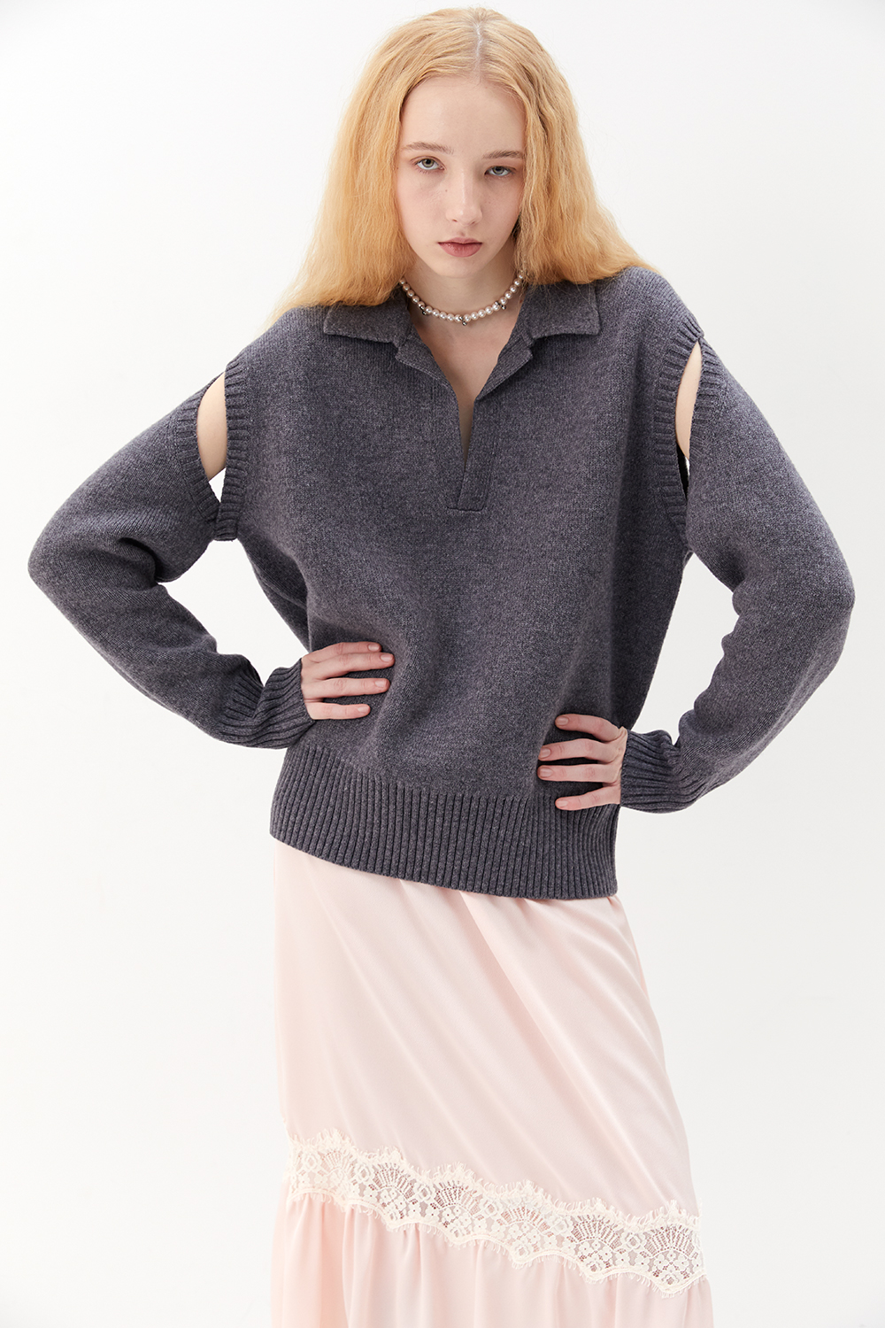 CAMPERLAB KNIT CUT-OUT POLO NECK GREY