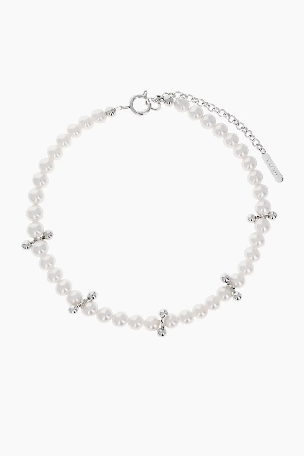 Beginning as a humble pursuit crafting original pieces for her friends, French designer Justine Clenquet expanded her jewelry practice into her eponymous label at the young age of 18. Taking cues from a variety of influences, ranging from 70’s glam rock to punk subcultures, Clenquet astutely reinterprets and blends established aesthetics with an eccentric allure. Her signature touch of glamour elevates familiar styles, such as the nostalgic choker of the 90’s, to refined adornments—all handcrafted in France with luxury materials like 24k gold and palladium-dipped metals. Clenquet’s forward-leaning design ethic invites an intermingling between seemingly disparate sentiments— delicate Swarovski crystals in ethereal shades are offset by heavy mixed-metal chains, while bold geometric silhouettes are paired with whimsical dangling embellishments, resulting in a provocative confrontation between traditionally masculine and feminine elements. Not confined solely to the domain of jewelry, Justine Clenquet’s enchanting sensibilities continue to take form in new territories, including handbags and eyewear.