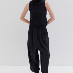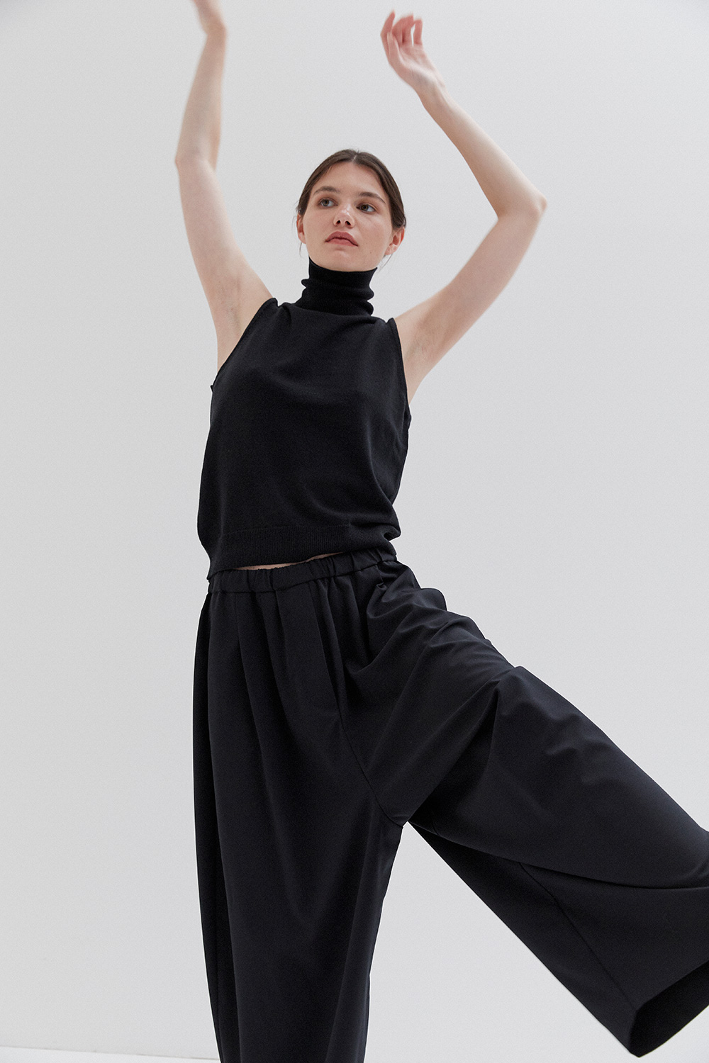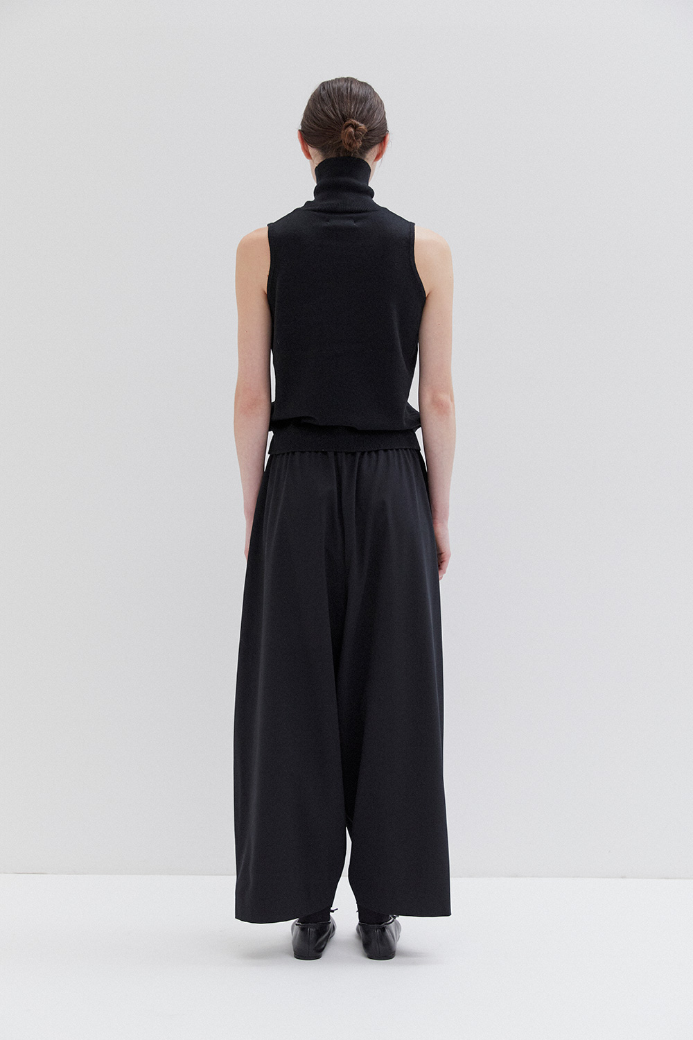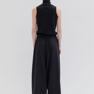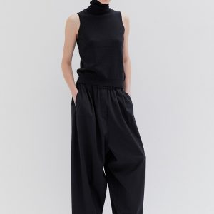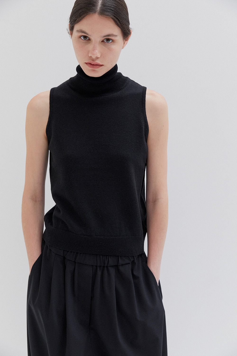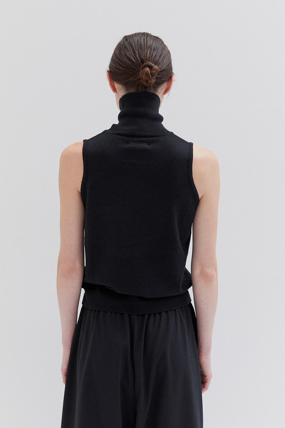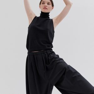 A lightweight, oversized fit with a fitted high collar and wide armholes. The design is minimal, featuring clean lines and a simple, modern aesthetic. The fabric is lightweight, giving the garment a relaxed and comfortable feel.
