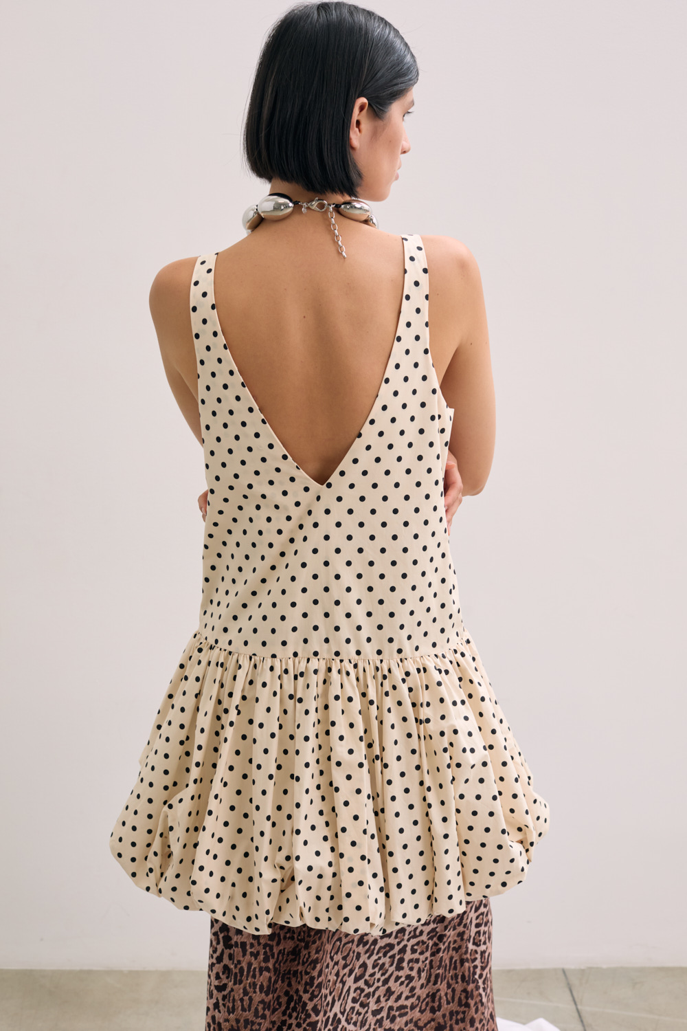 Mini dress with v neck .