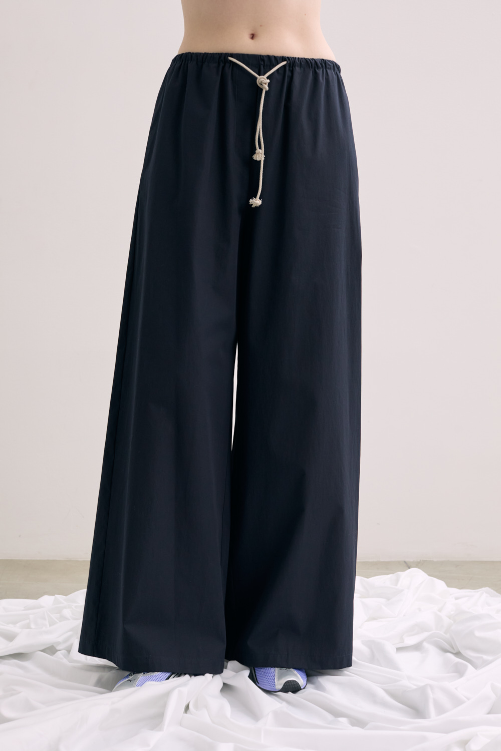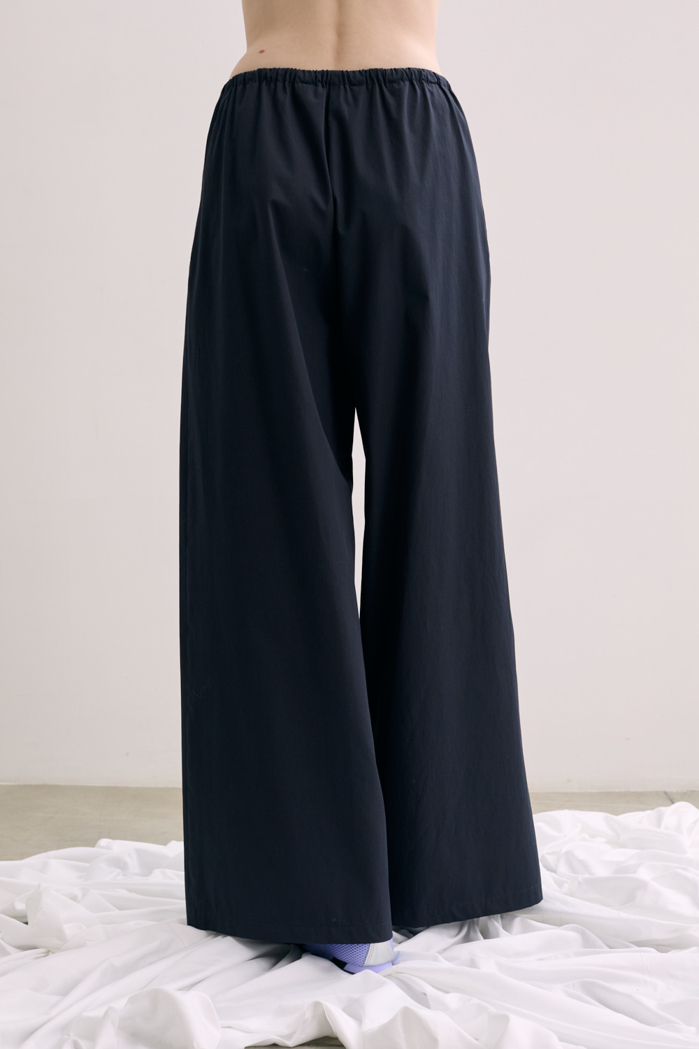 Flared pants in crispy cotton with elastic waist and pockets .