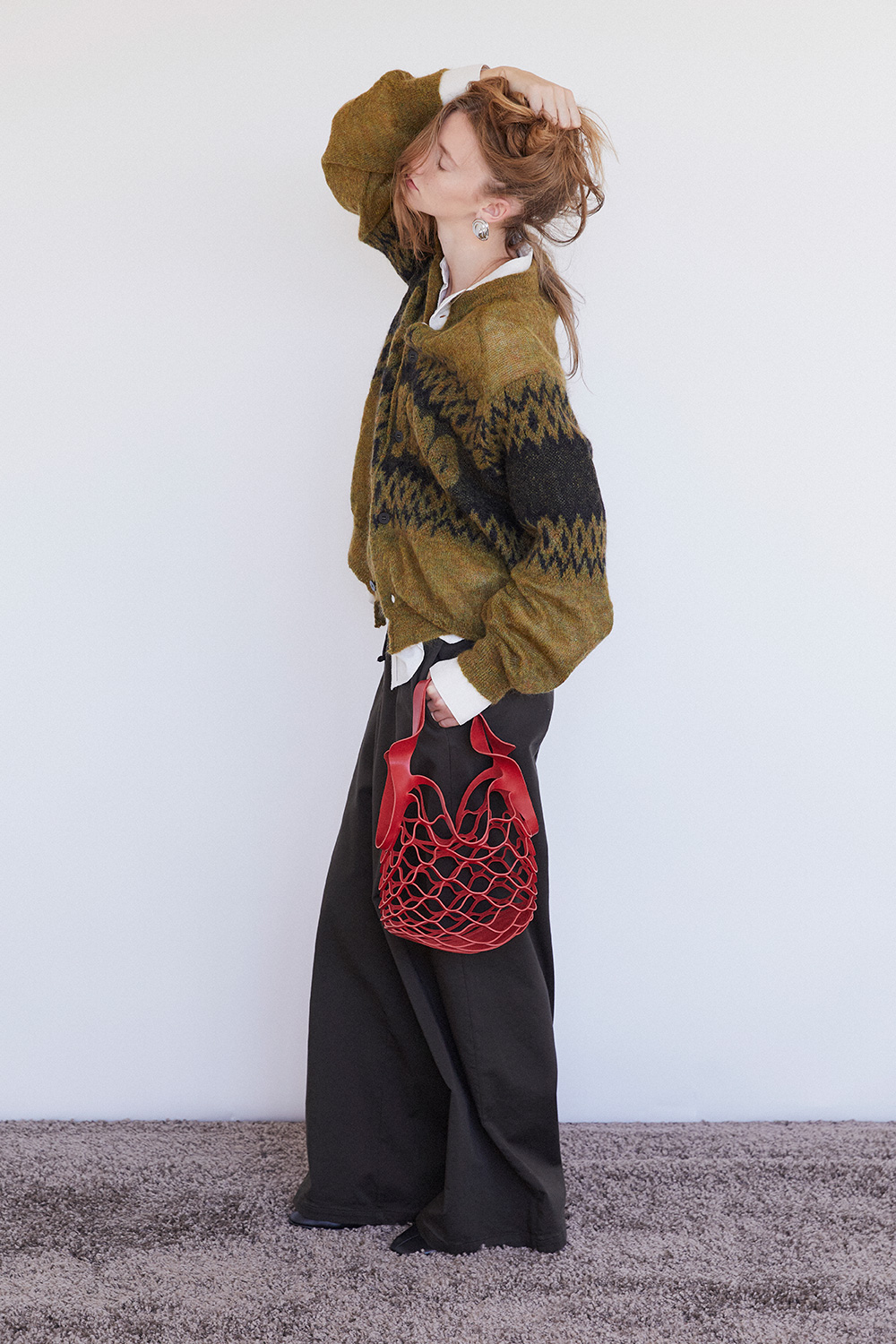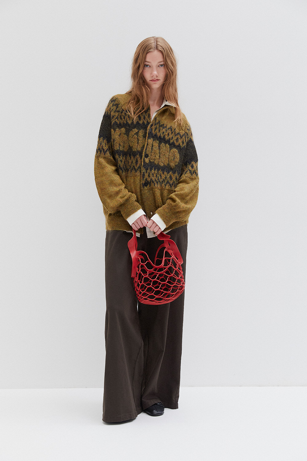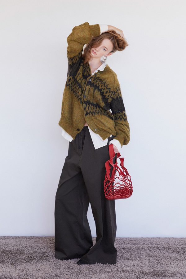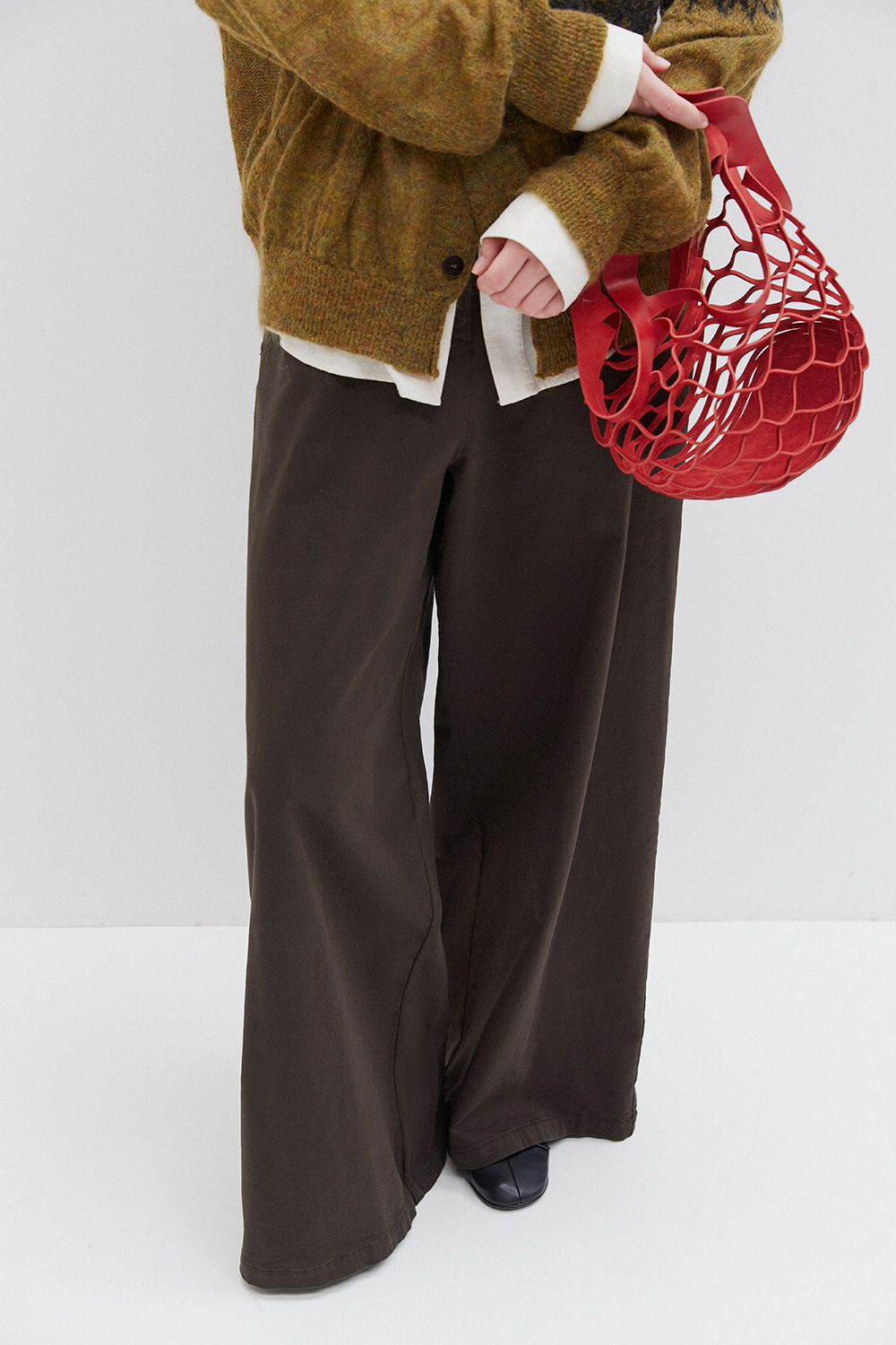 Oversize pants with elastic band on the waist .