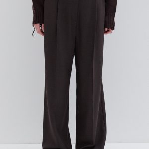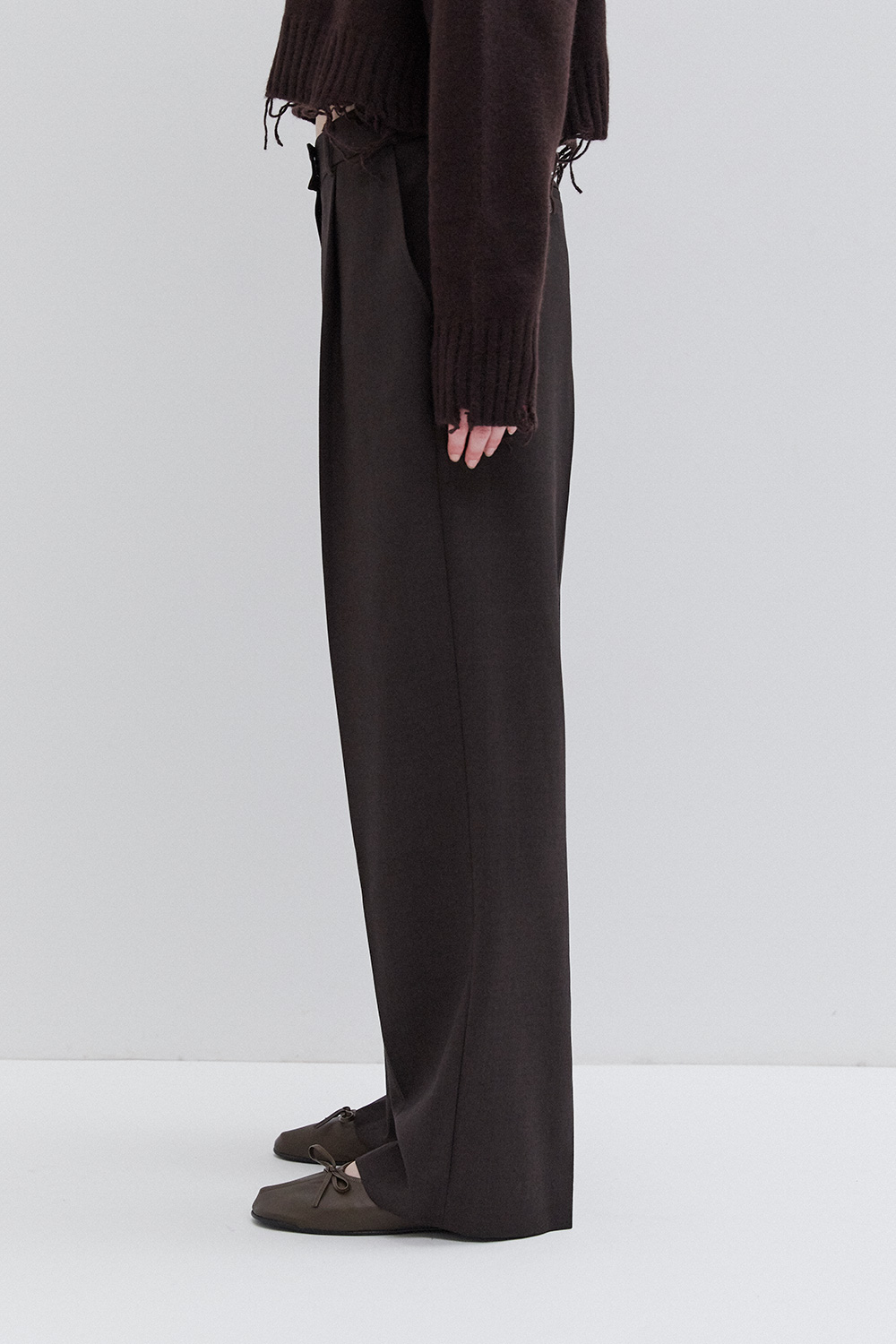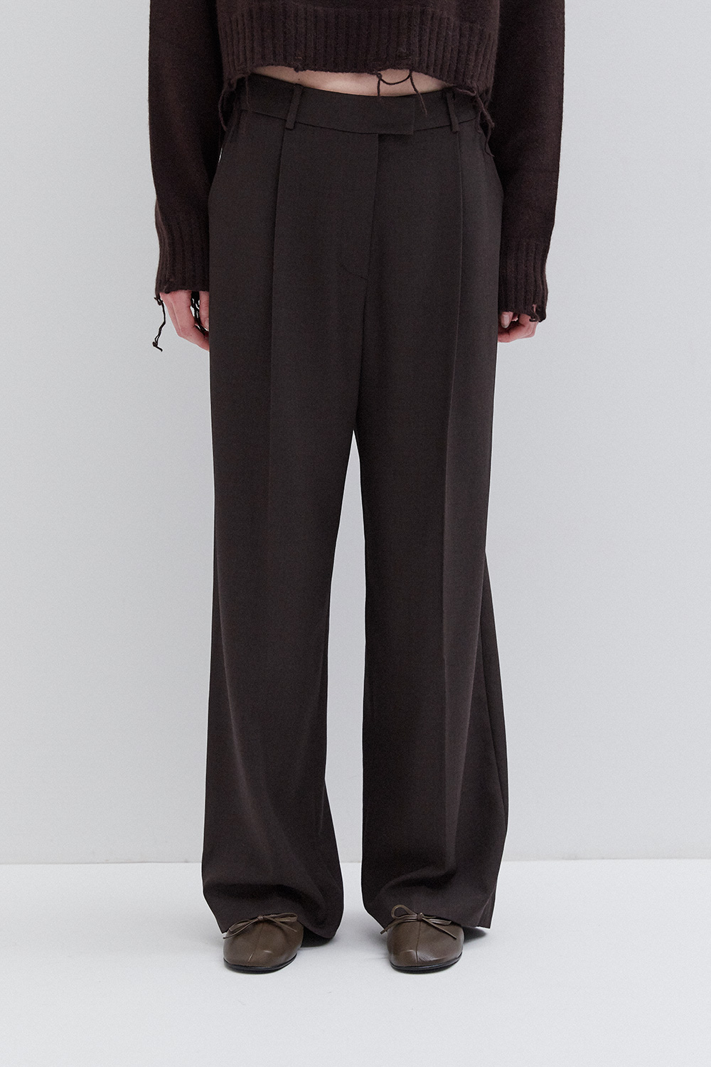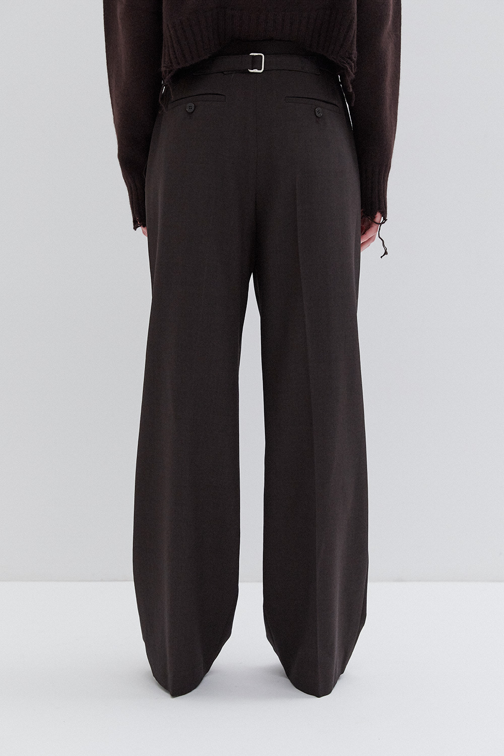 High / mid waist pants with belt with buckle on the back.