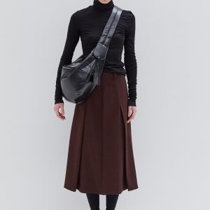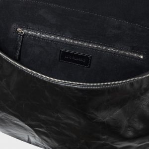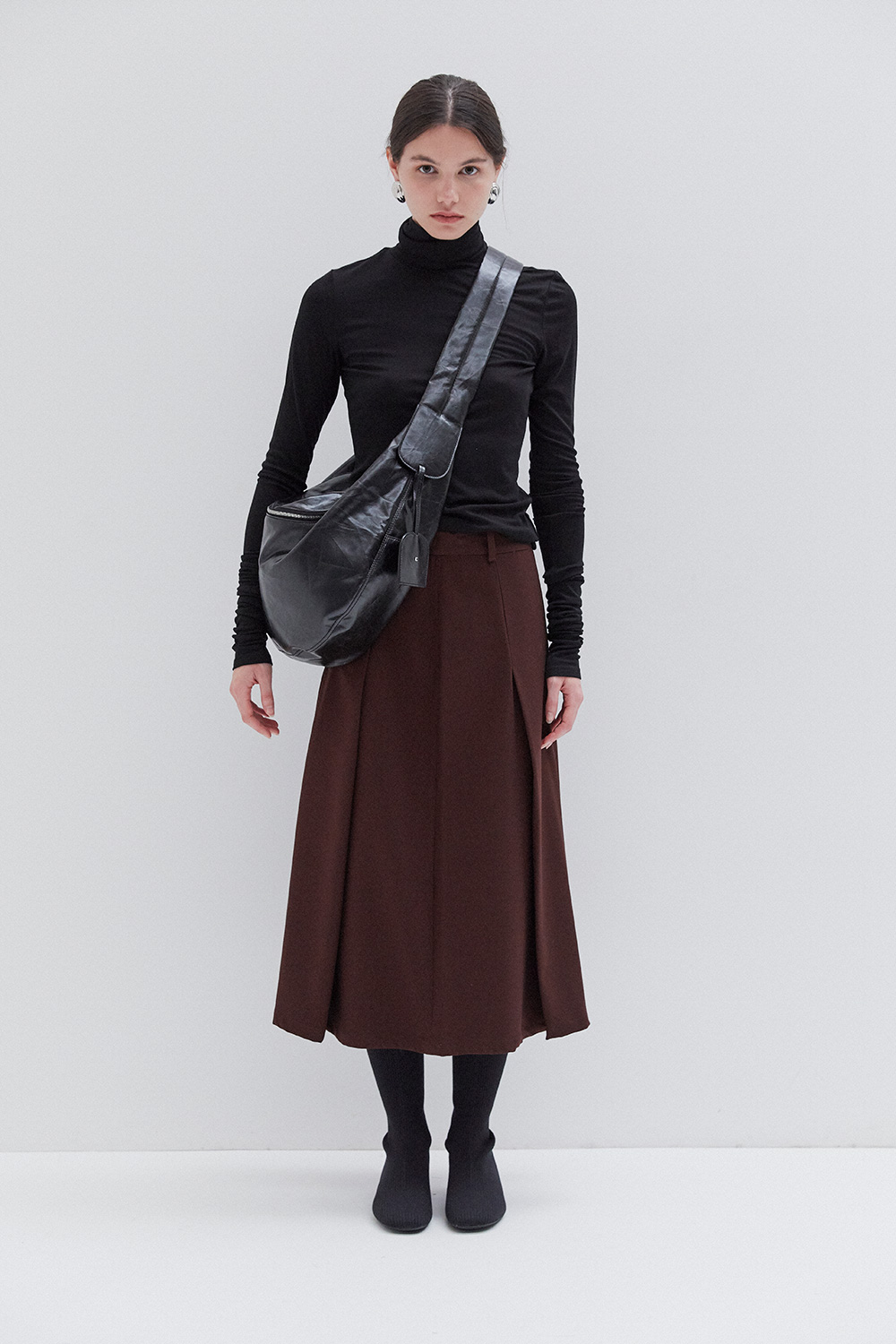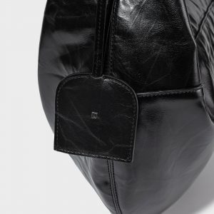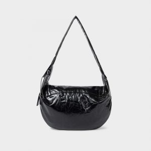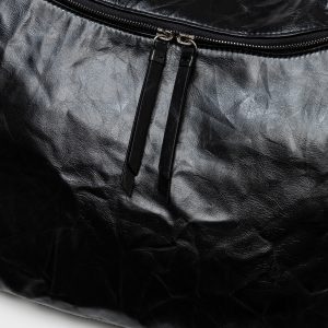 Black leather two-way zip fastening curved silhouette single shoulder strap.