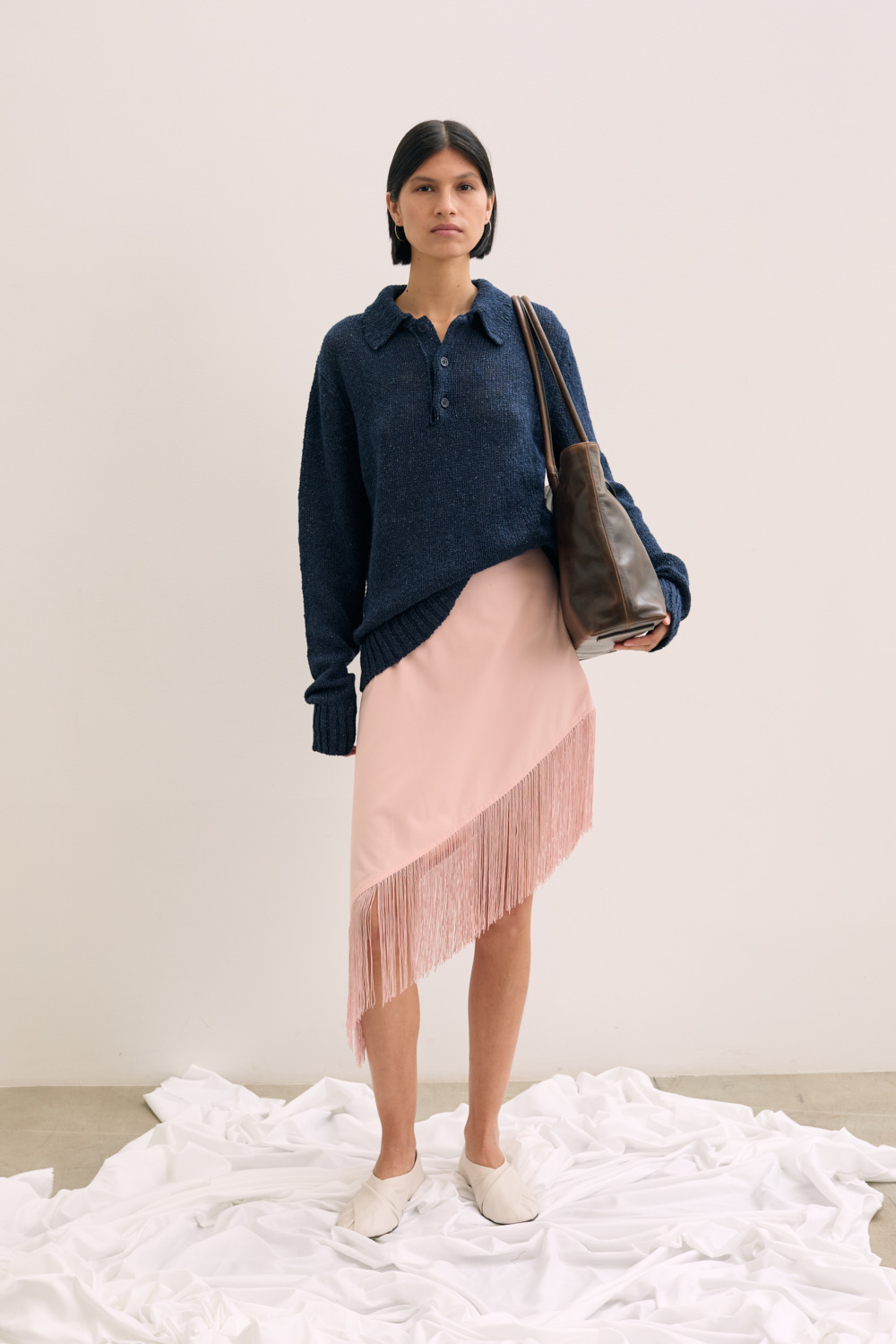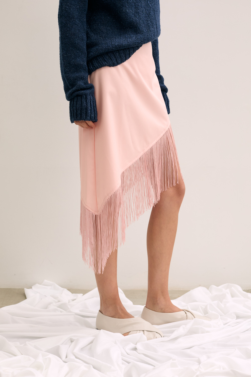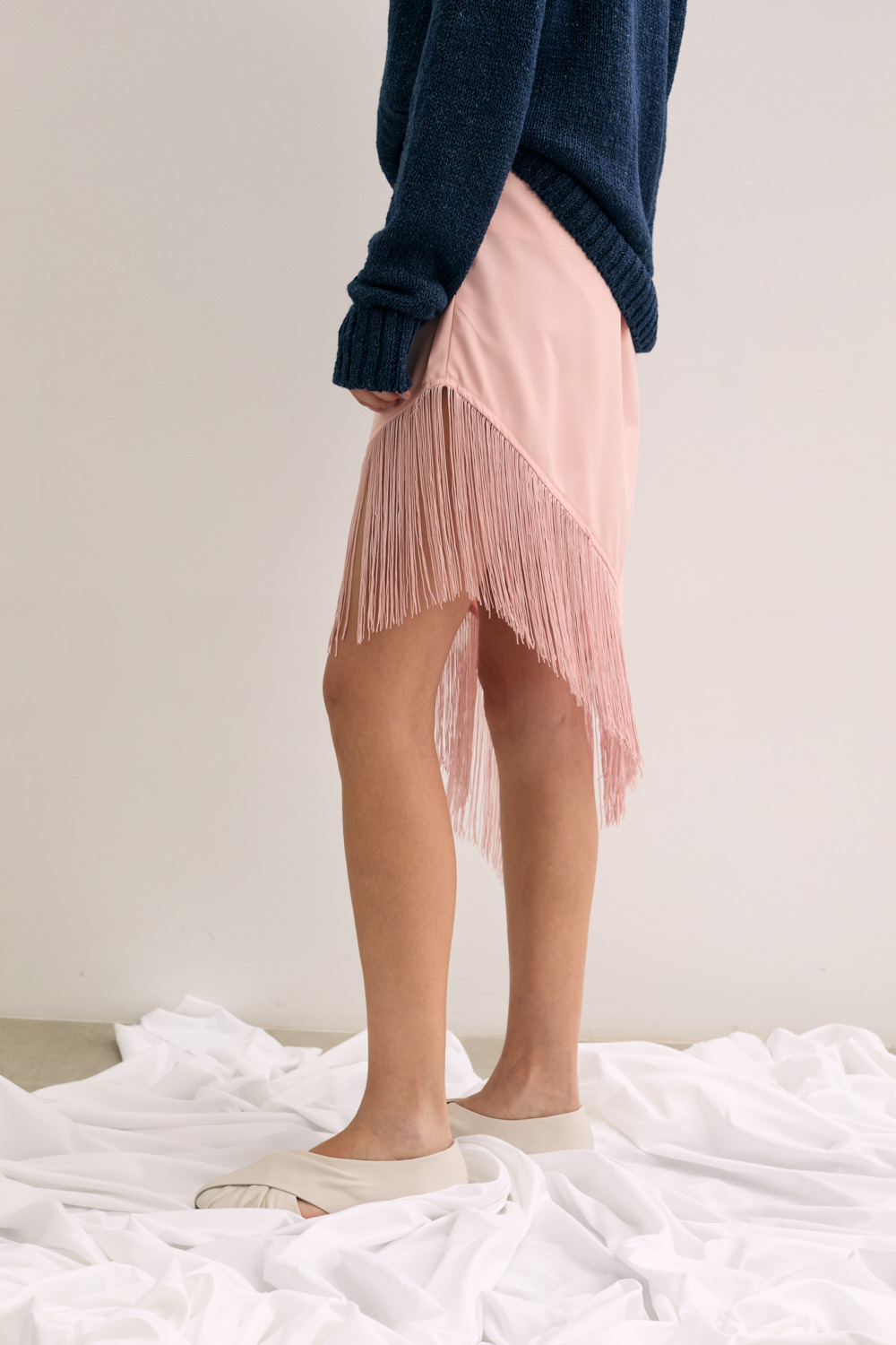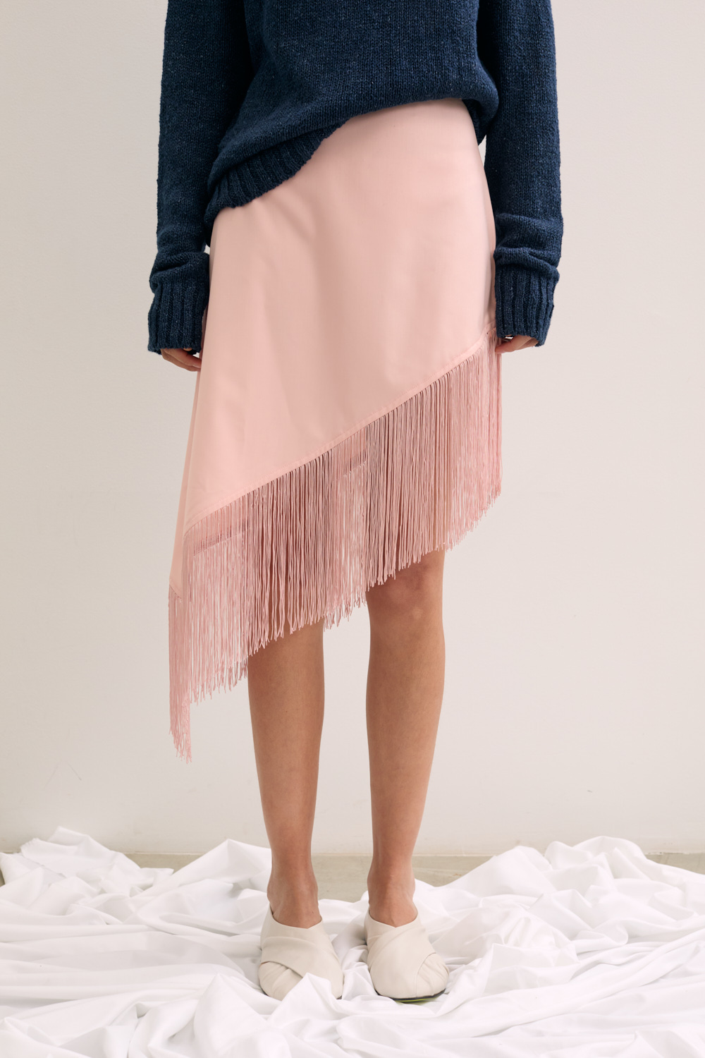 Midi skirt in satin with fringe detail .