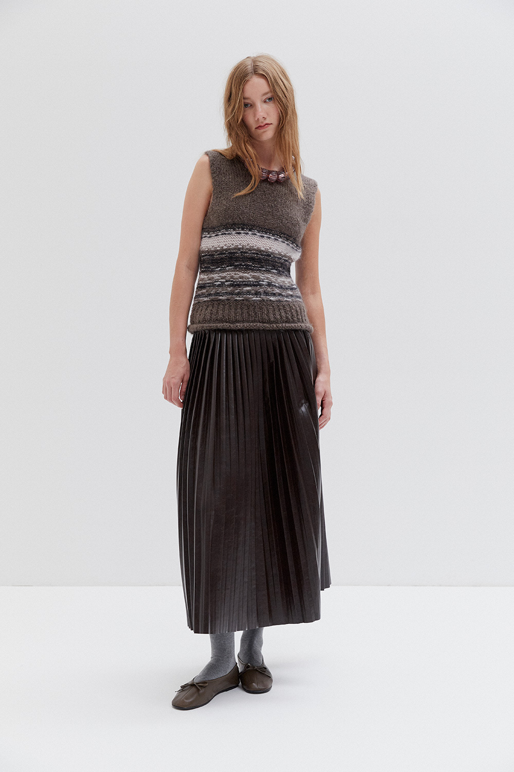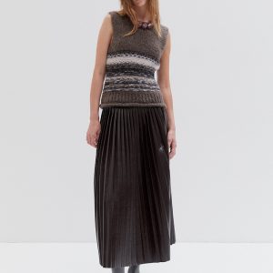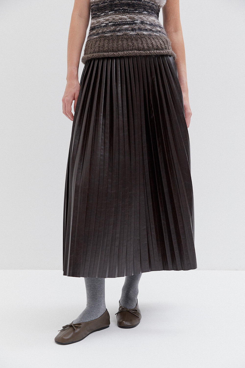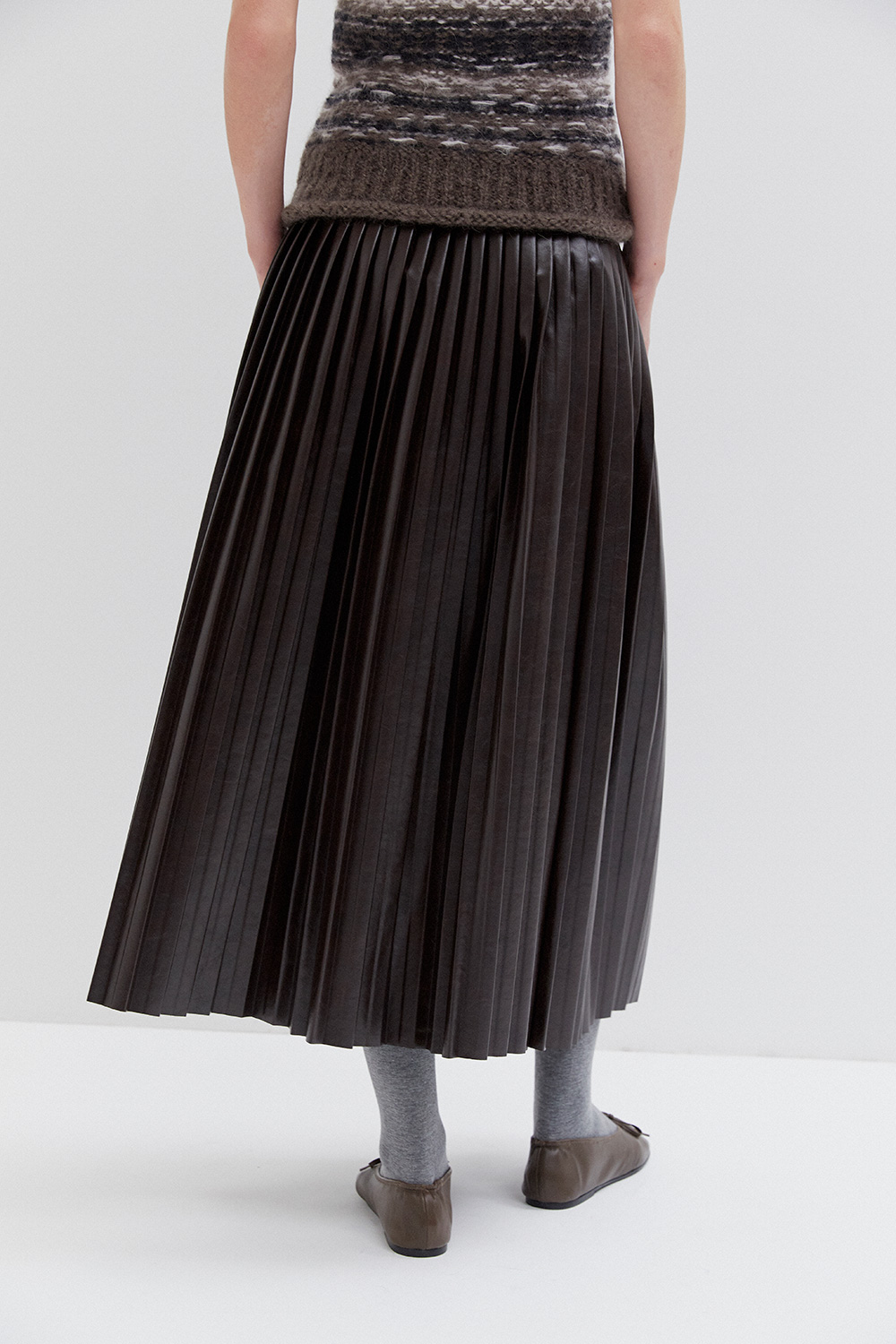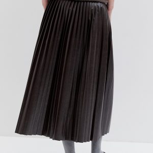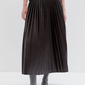 Pleated faux leather midi skirt
