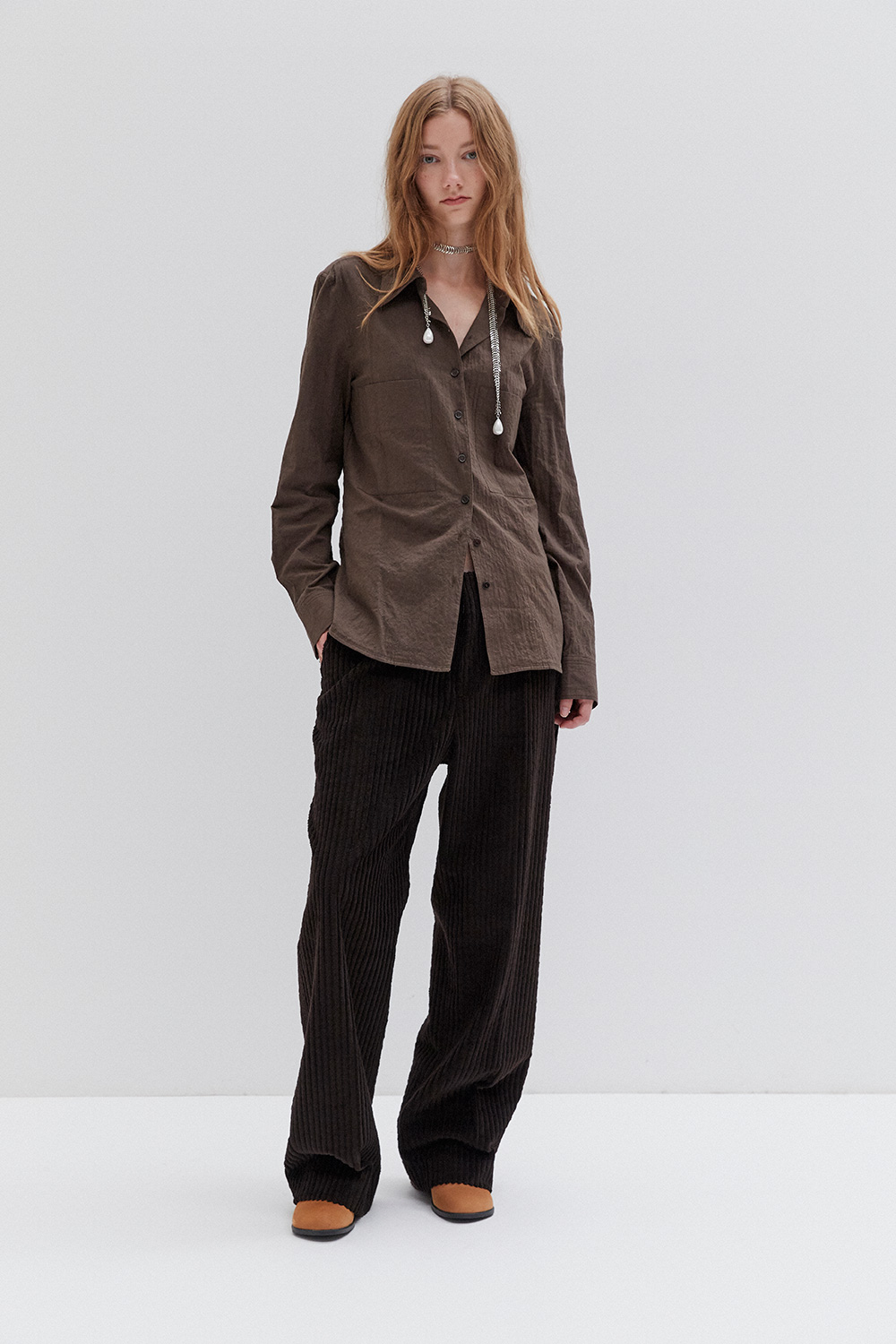 Produced in a heavy corduroy Italian cotton fabric, the men’s Borrowed Chino has a wide legged relaxed fit and features two side pockets, two back welt pockets, horn buttons, a YKK zip fly and covered hook-and-eye waistband fastening.