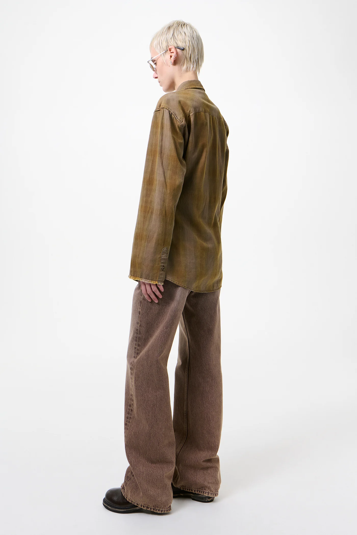This garment is manufactured using carefully sourced material with a unique treatment process that will give each garment an individual shade and appearance. This technique could result in some color bleed onto lighter garments or surfaces. The garment shall be shaped by its wearer and naturally distress over time to finish the design process.