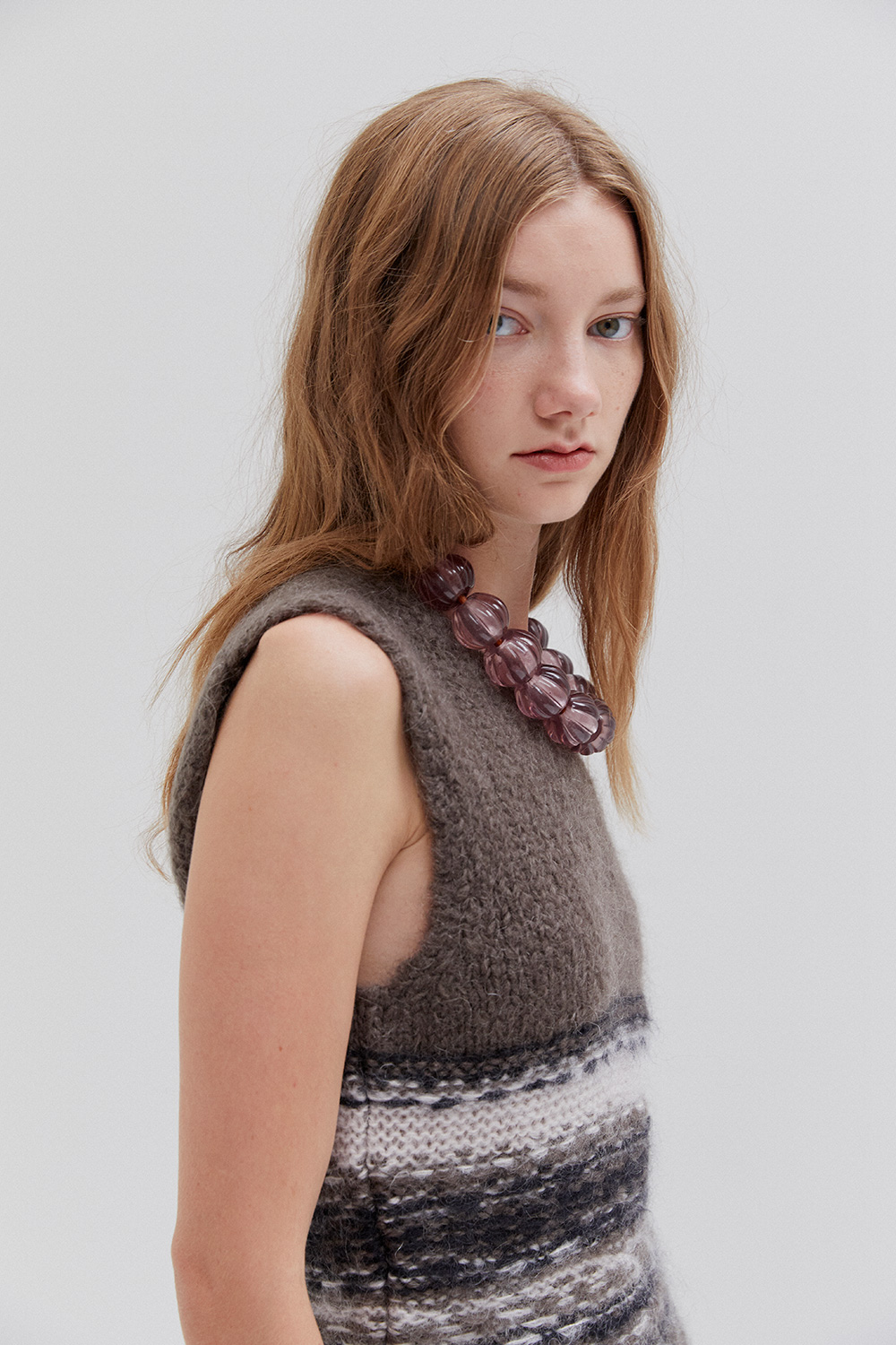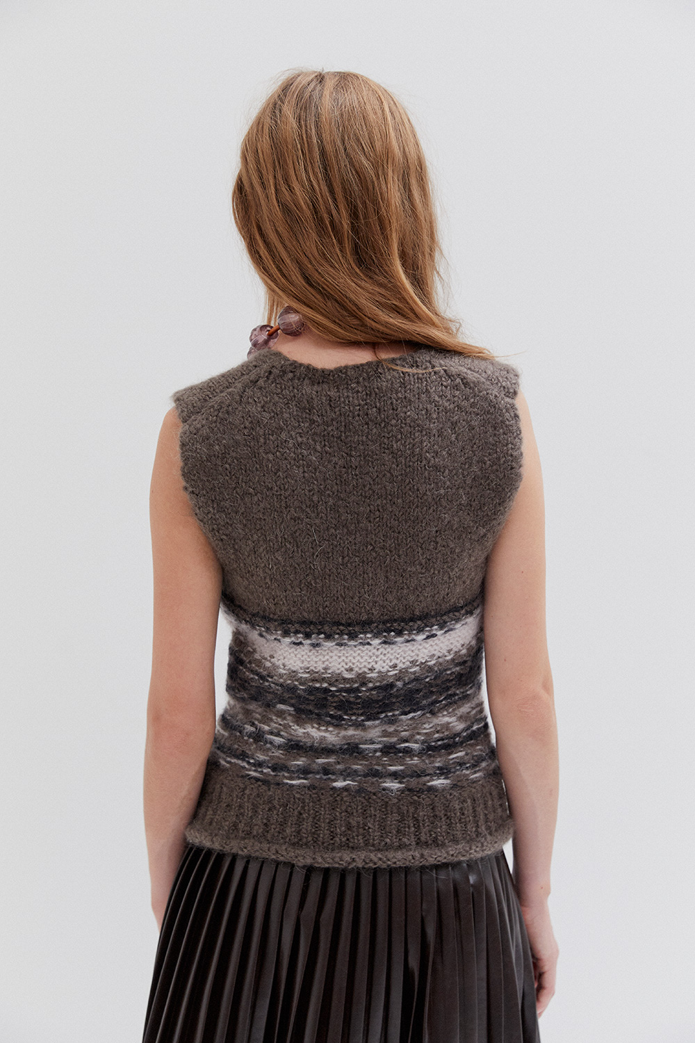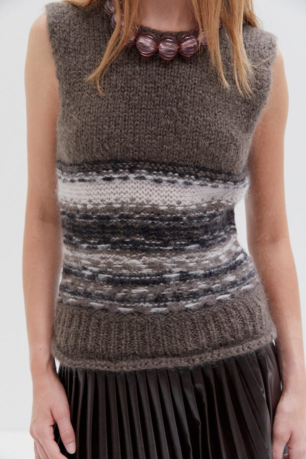 Knit mohair- and wool-blend vest.