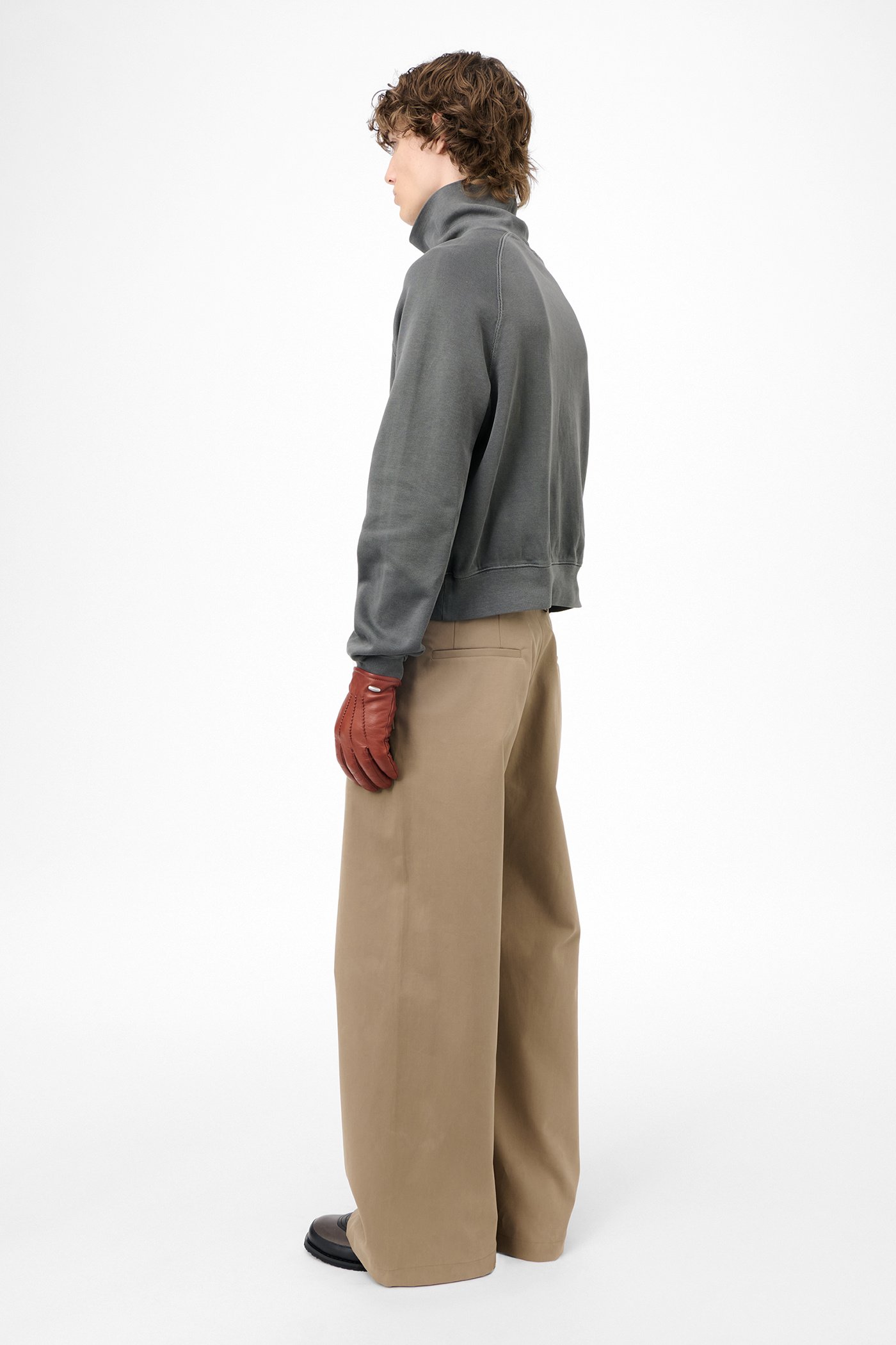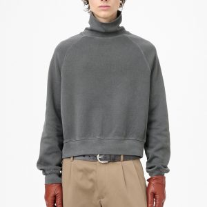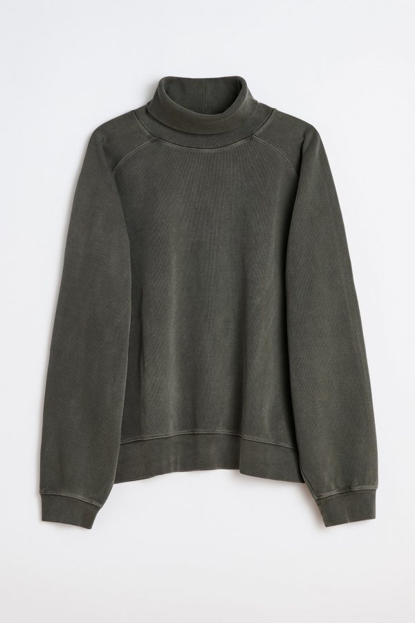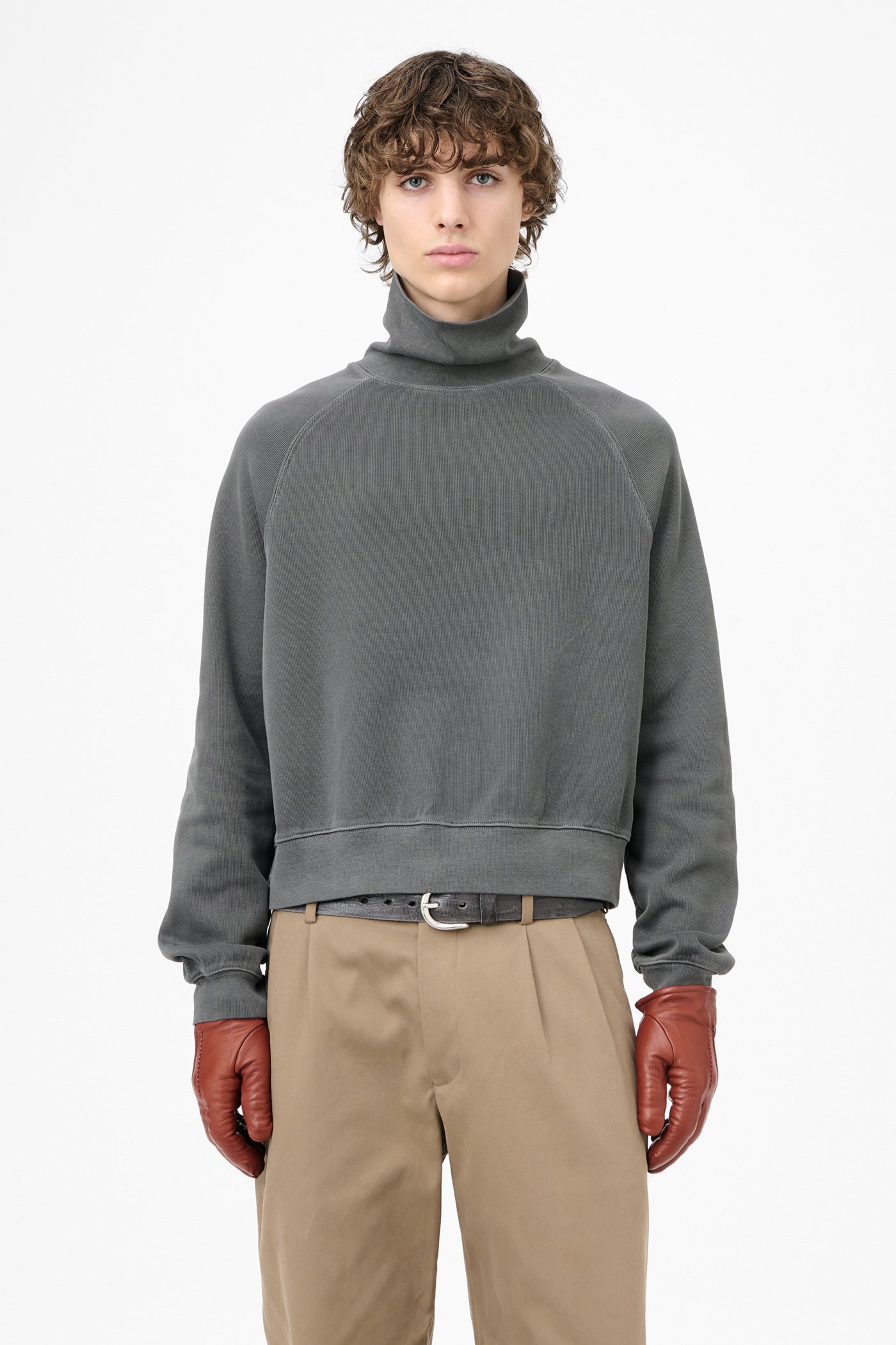 Scholar Rollneck in Worn Black Athletic Rib. Produced in organic cotton, the men’s Scholar Rollneck has a round, slightly cropped fit taken from our sweatshirt shape and features a high funnel collar that can be worn up or folded and distinctive hammer shoulder construction that is atypical for jersey sweats.