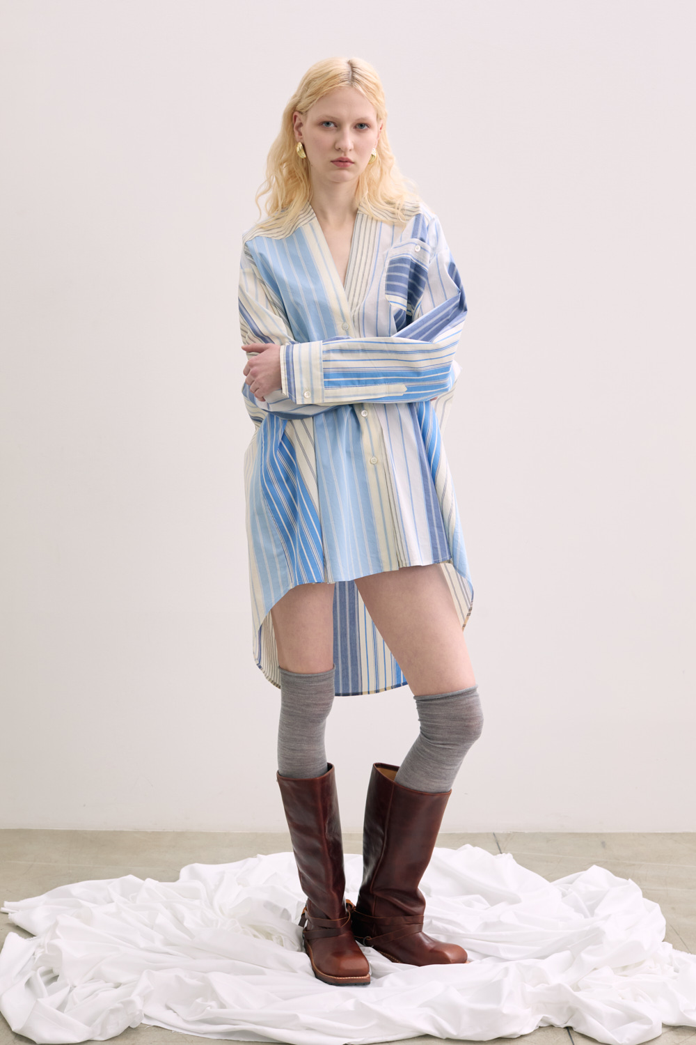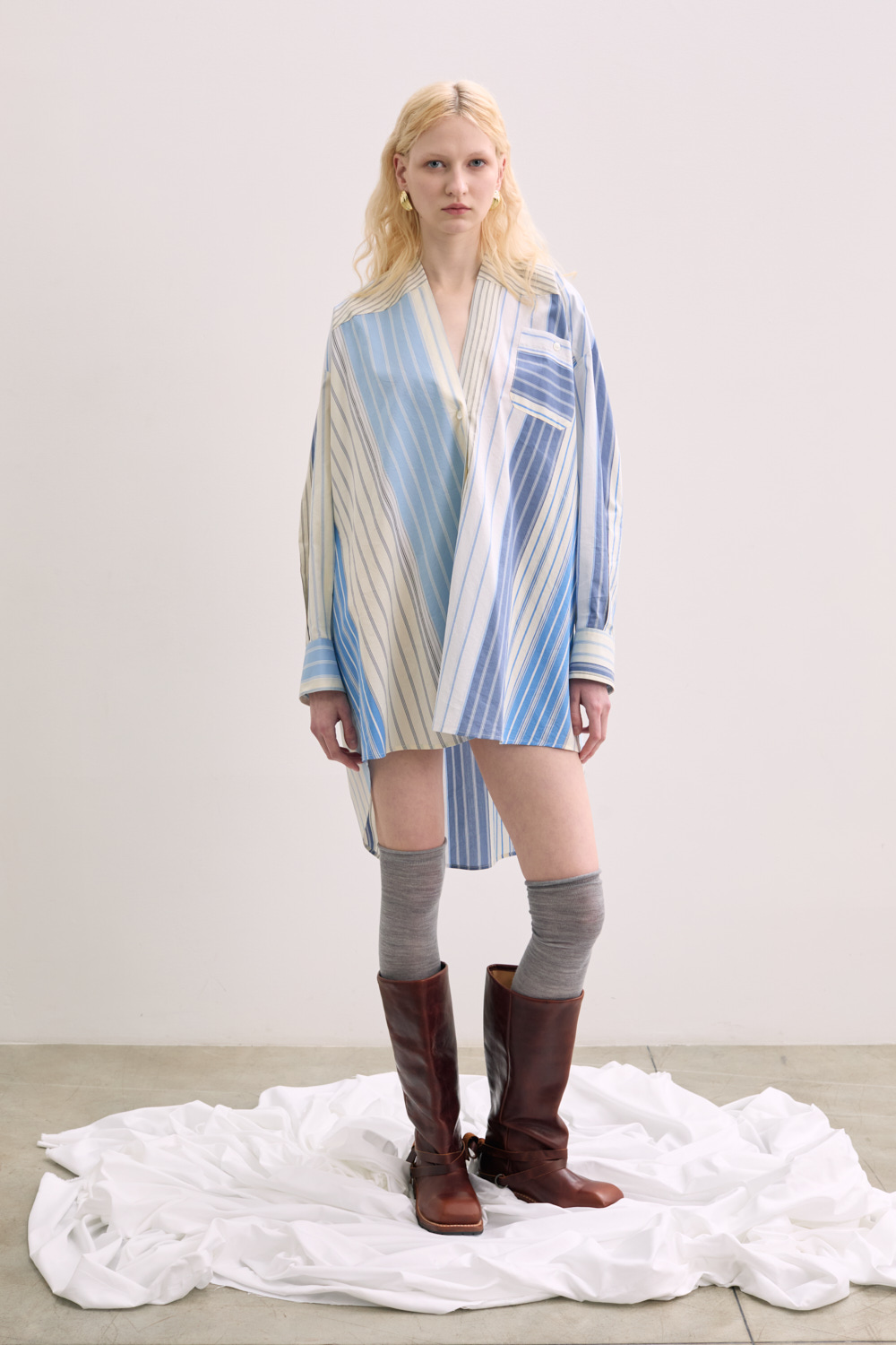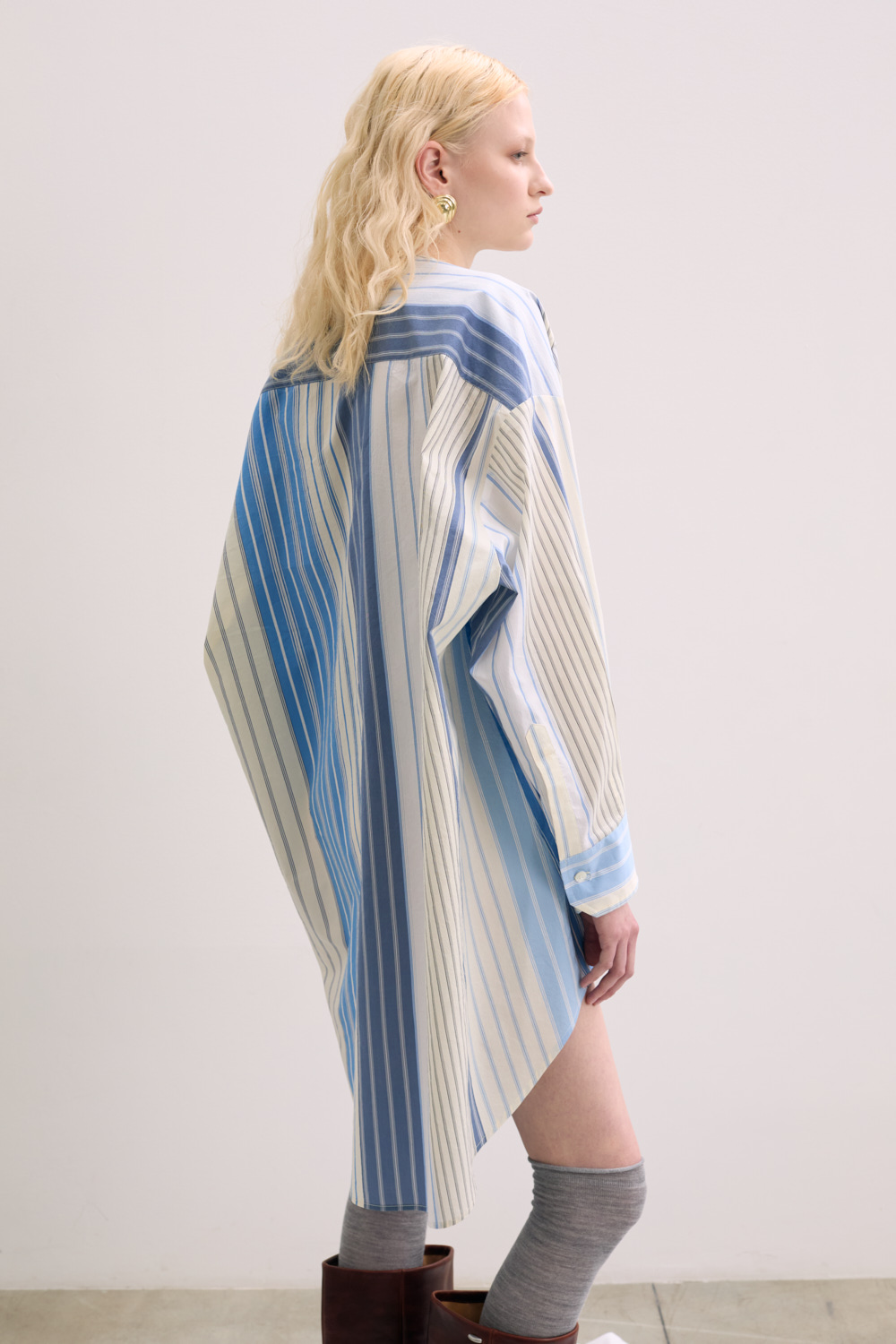 Oversize shirt in with long sleeve and v neck.