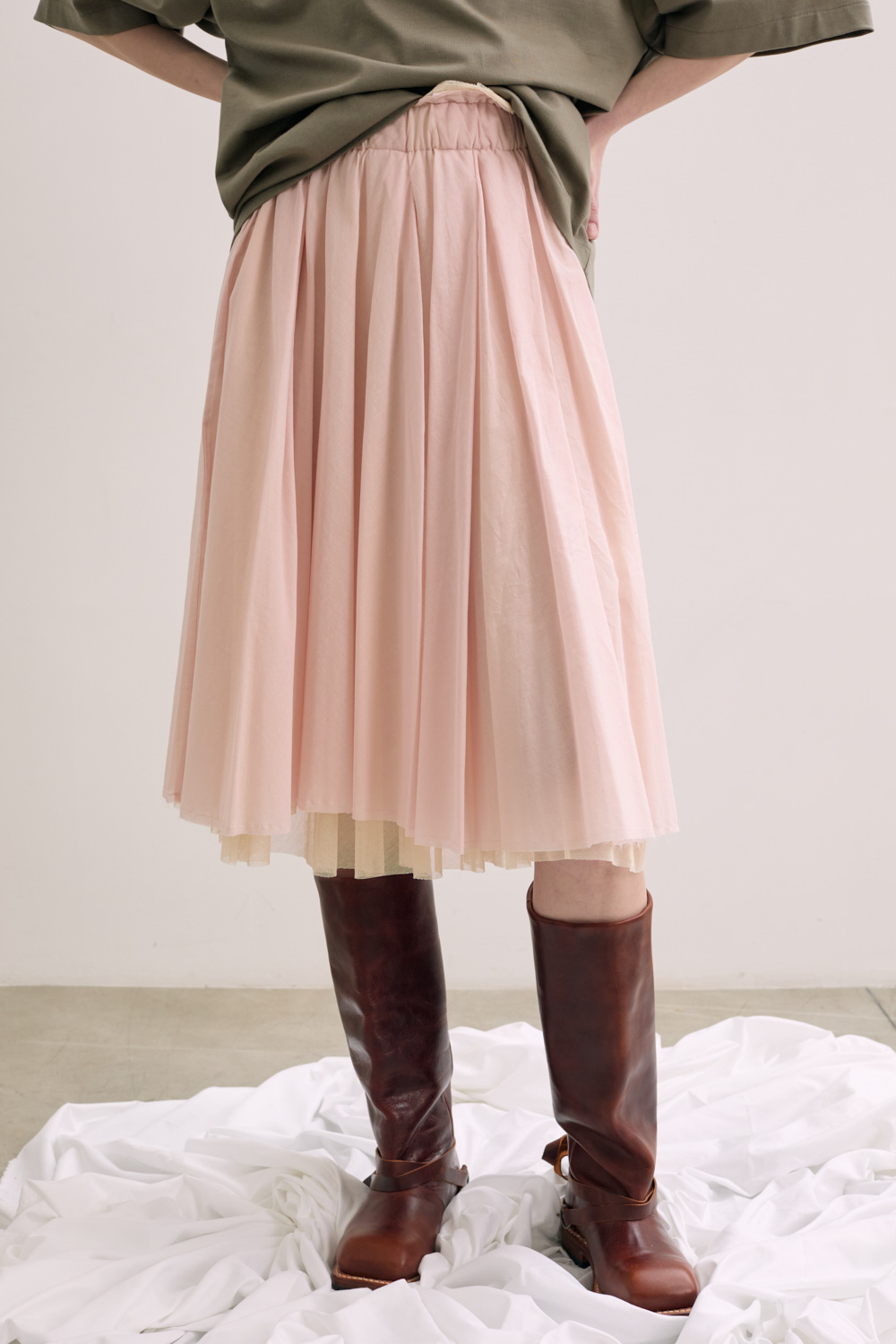 Skirt with elastic waist and lace details.