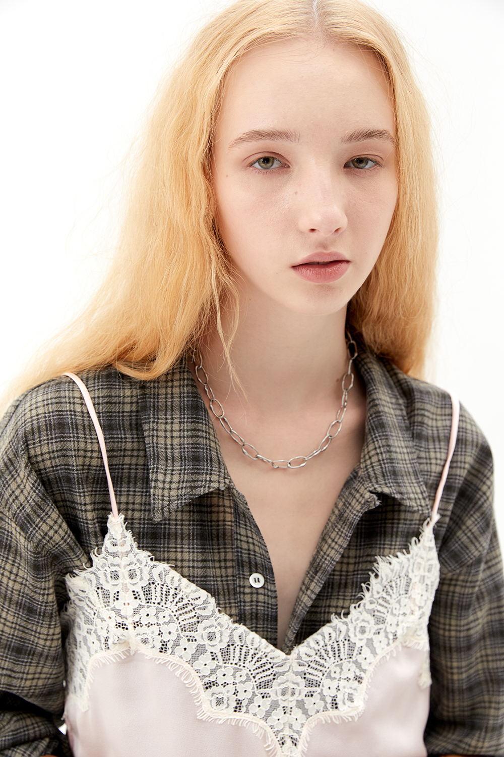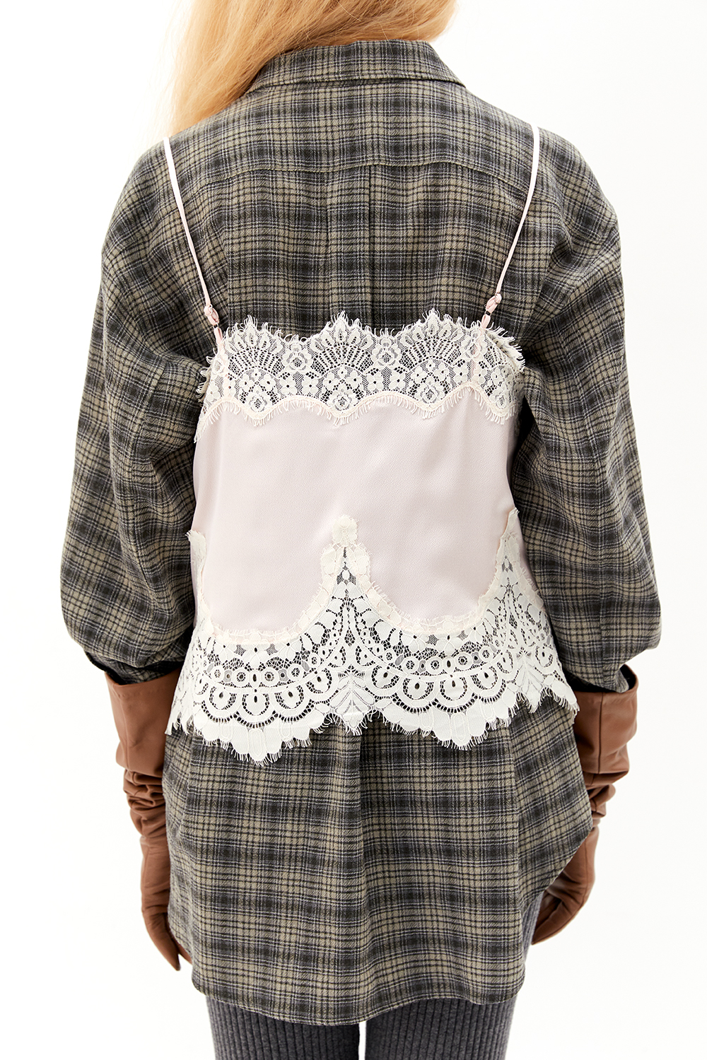 Top in a lightweight, smooth fabric with adjustable straps and a delicate lace trim at the neckline and hem.