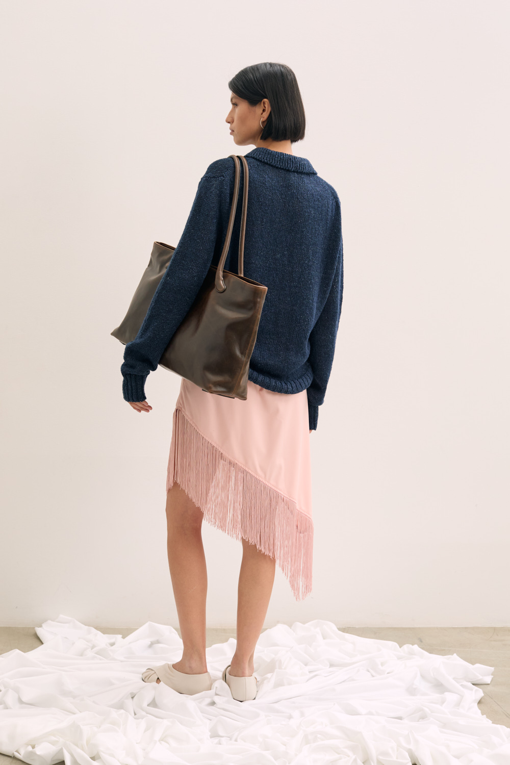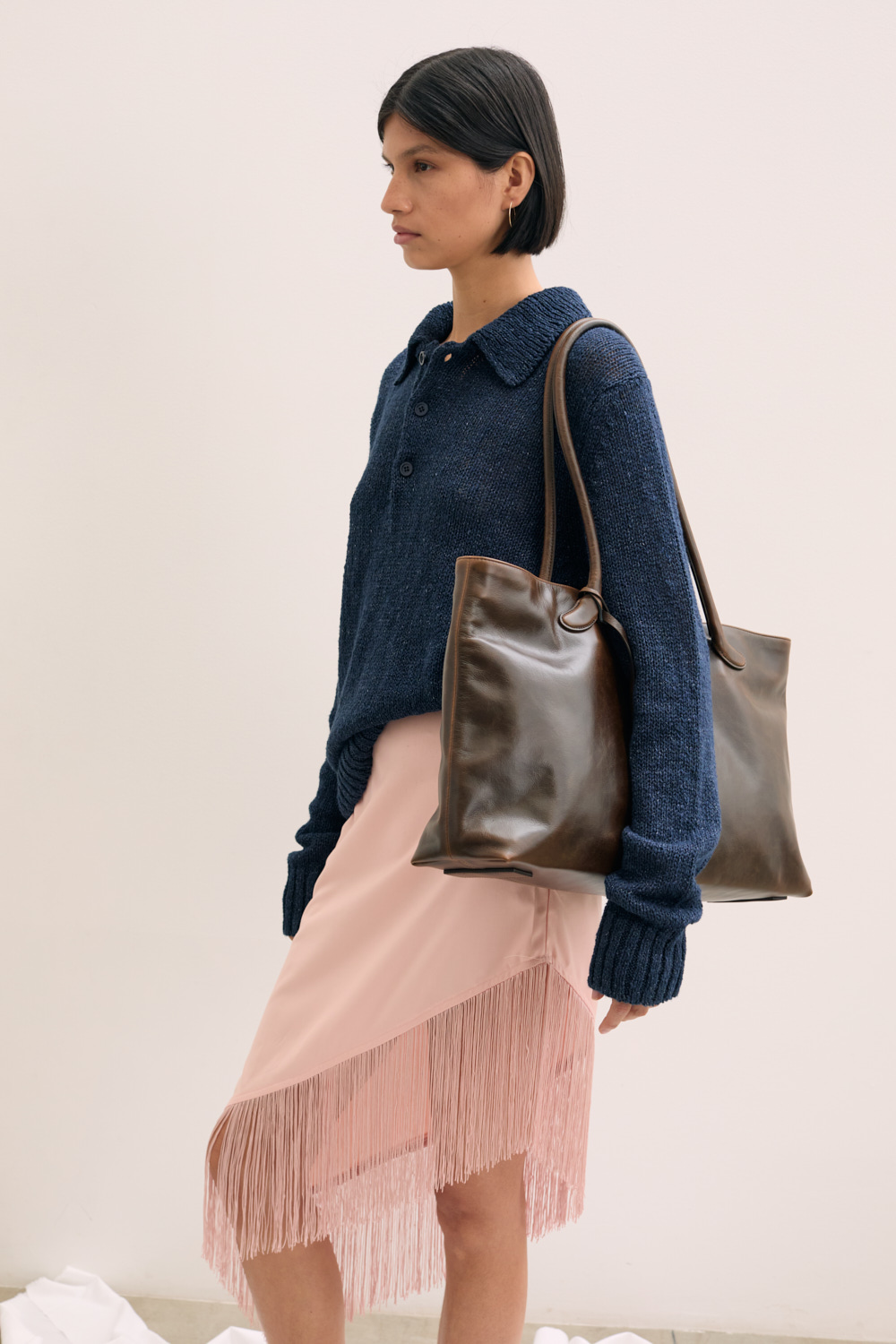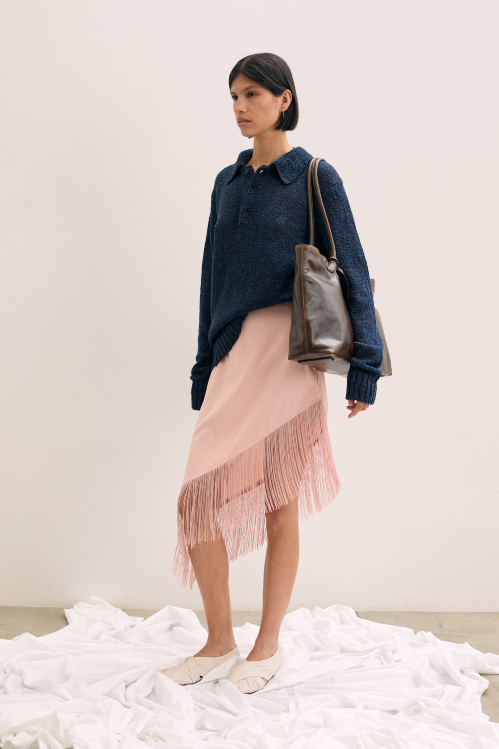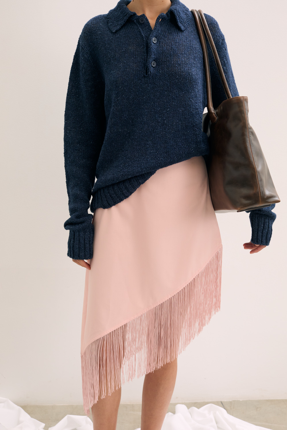 Polo collared linen knit .
