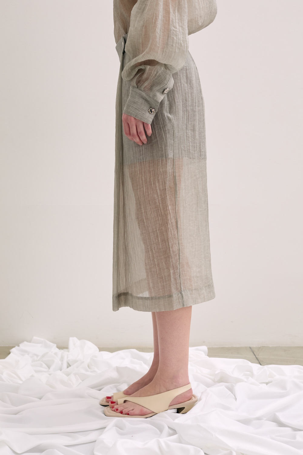 THE DELFI SKIRT IS A SHEER MIDI-LENGTH SKIRT FEATURING BUTTON DETAILS AT THE WAISTBAND FOR A DELICATE, FEMININE TOUCH. ITS LIGHTWEIGHT FABRIC CREATES AN EFFORTLESSLY ELEGANT LOOK.